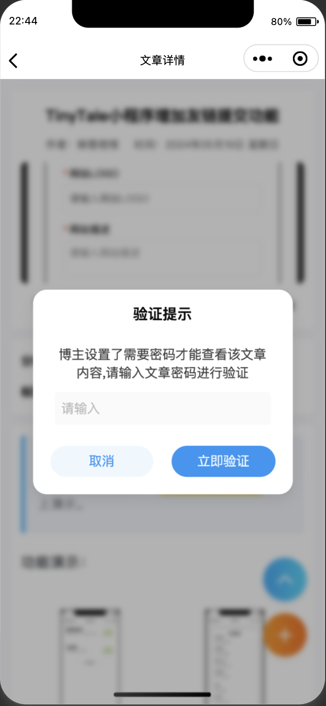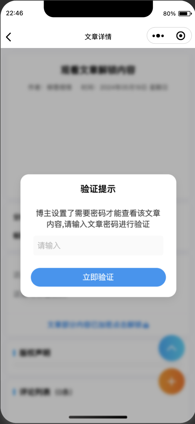 设置文章详情全部加密,验证密码后才能关闭弹窗显示完整内容