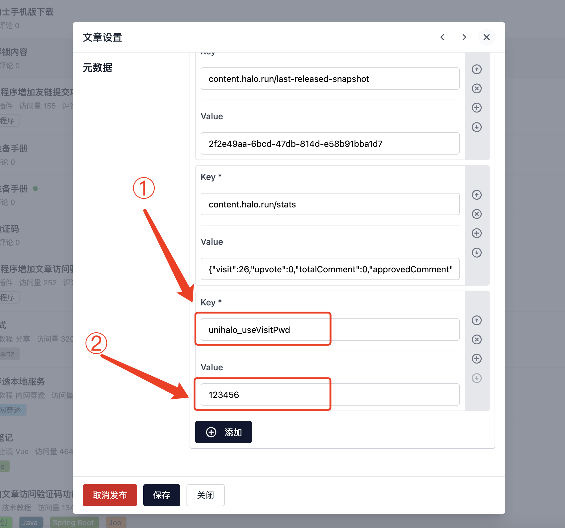 unihalo_useVisitMorePwd:设置文章详情部分内容加密unihalo_useVisitPwd:设置文章详情全部加密