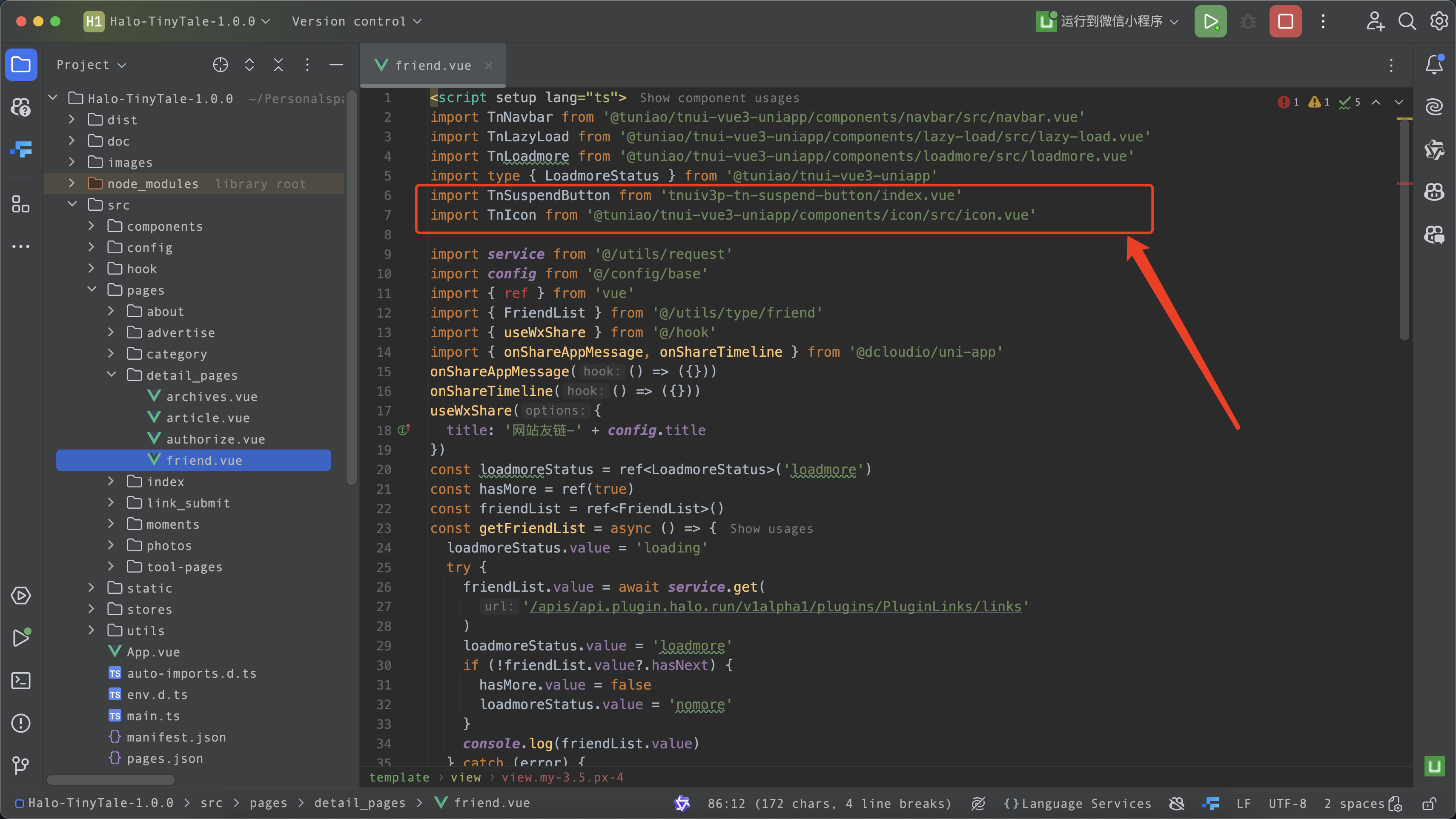 import TnIcon from '@tuniao/tnui-vue3-uniapp/components/icon/src/icon.vue'代码插入位置如图所示: