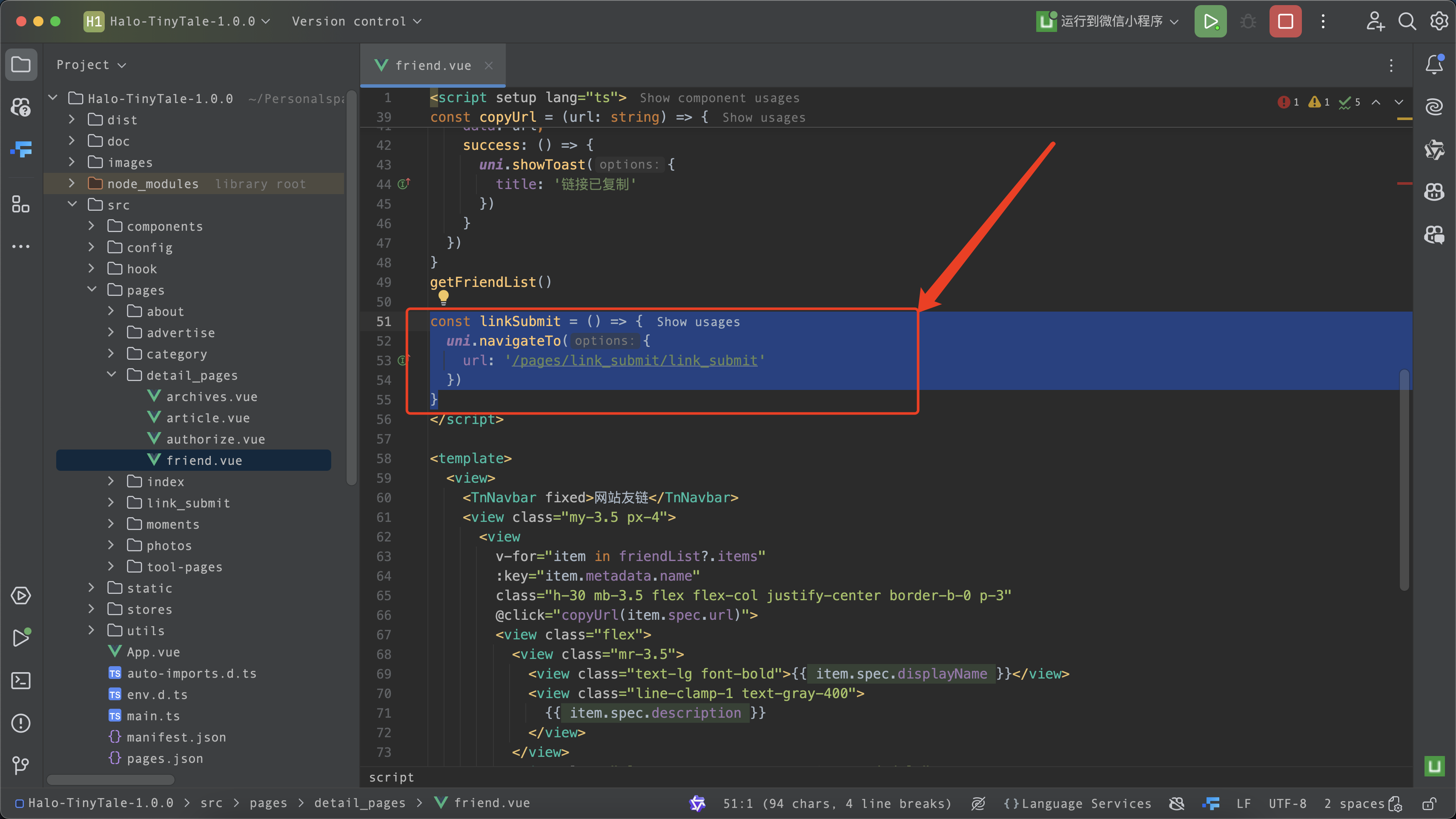 pages目录下新增页面src/pages/link_submit/link_submit.vue,代码如下:
